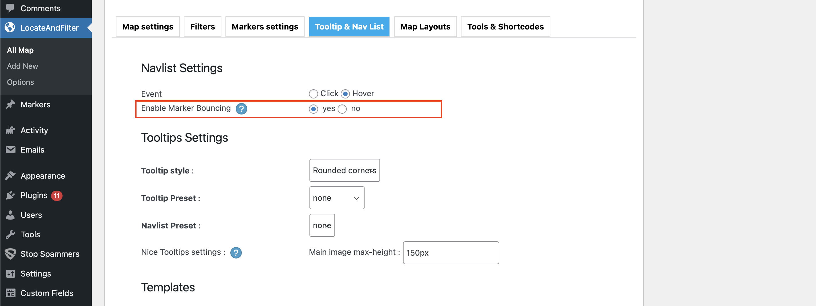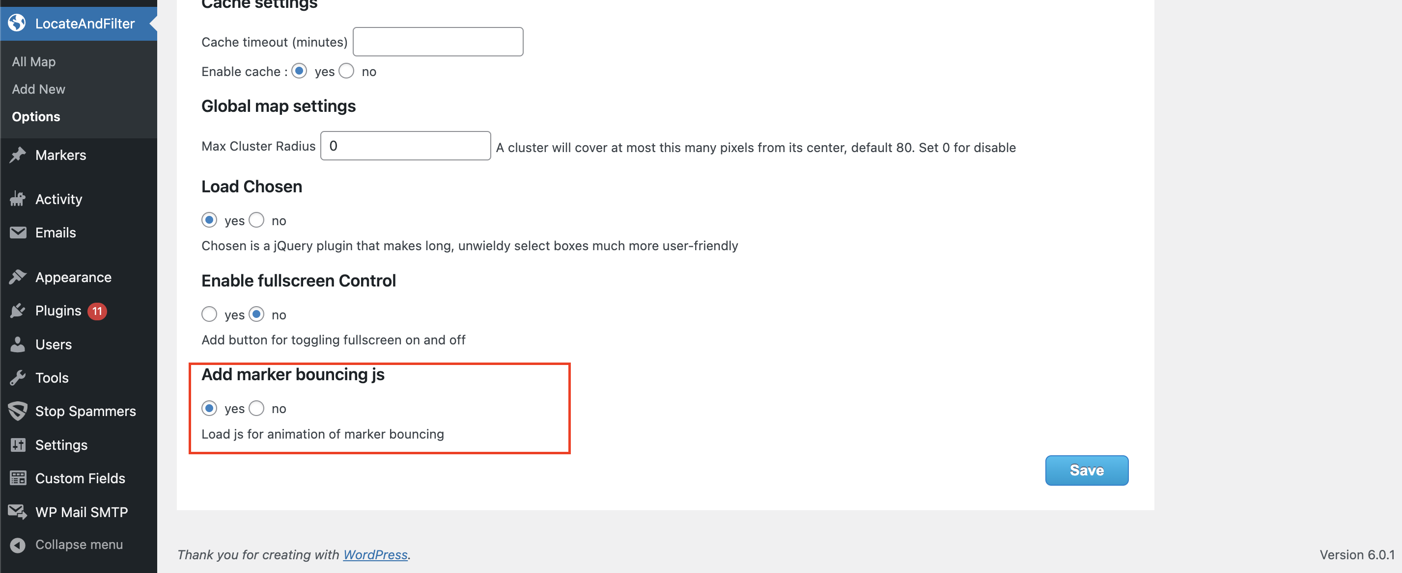 set ‘Add marker bouncing js’ to yes